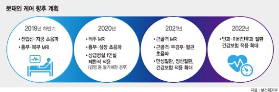 문 대통령은 "의학적으로 필요한 모든 치료에 건강보험 적용을 확대해나갈 것"이라며 향후 문재인케어의 목표도 소개했다. 당장 올해 9월부터 전립선 초음파, 10월부터 복부와 흉부 MRI, 12월부터 자궁과 난소 초음파도 건강보험이 적용된다. 척추와 관절, 안과 질환, 수술 및 치료 재료에도 적용이 확대된다.