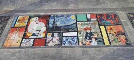 그림 타일은 문화의 거리 4개소 바닥에 장식됐으며 고흐, 샤갈 등 유명 화가 작품 50여점이 선보였다. 그림 타일 설치는 평촌1번가 명품거리 조성을 위한 특수시책 일환으로 진행됐다.
