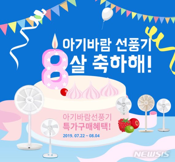 【서울=뉴시스】김진아 기자 = 한일전기는 자사 대표 브랜드 '아기바람' 8주년을 맞아 선풍기 특별 프로모션을 진행한다고 22일 밝혔다.