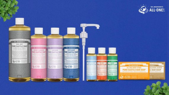 닥터 브로너스 퓨어 캐스틸 솝과 바솝은 합성화학성분을 배제, 미국 농무부(USDA) 인증 유기농 원료를 담아 민감성 피부도 안심하고 사용할 수 있는 저자극 올인원 클렌저다.