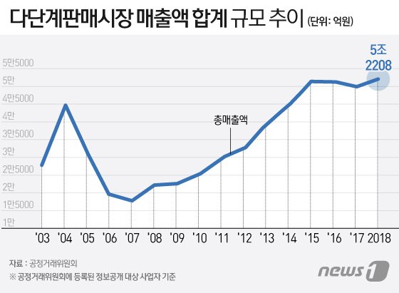 24일 공정거래위원회에 따르면 지난해 다단계 판매시장 규모는 5조2208억원으로 전년대비 3.7% 성장했다. 2015년까지 매년 큰 폭으로 성장했지만 이후 '정체기'에 빠진 모습이다.