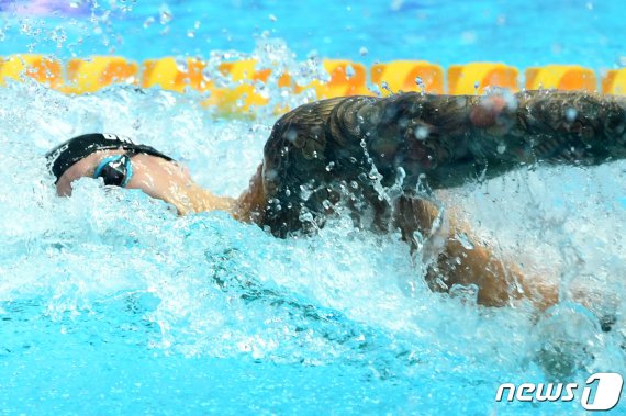(광주=뉴스1) 나연준 기자 = 미국의 카엘렙 드레셀이 남자 자유형 100m 준결승을 1위로 통과했다.