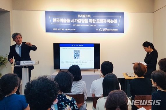 30일 오후 김영석 한국미술시가감정협회 감정위원장(61)이 기자 간담회를 열고 '한국미술품시가감정을 위한 모형과 매뉴얼'을 공개했다. 이 자리에는 문화체육관광부 권수진 시각예술디자인과장을 비롯해, 예술경영지원센터, 아트뱅크 관계자들도 참여했다.
