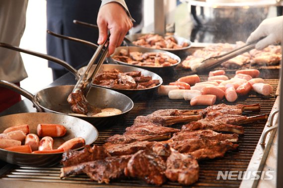 중구 장충동 반얀트리 클럽 앤 스파 서울이 오는 9월1일까지 매일 오후 6~9시 야외 수영장 '오아시스' 옆 '아웃도어 키친'에서 운영하는 '오아시스 풀 사이드 바비큐 뷔페'다.