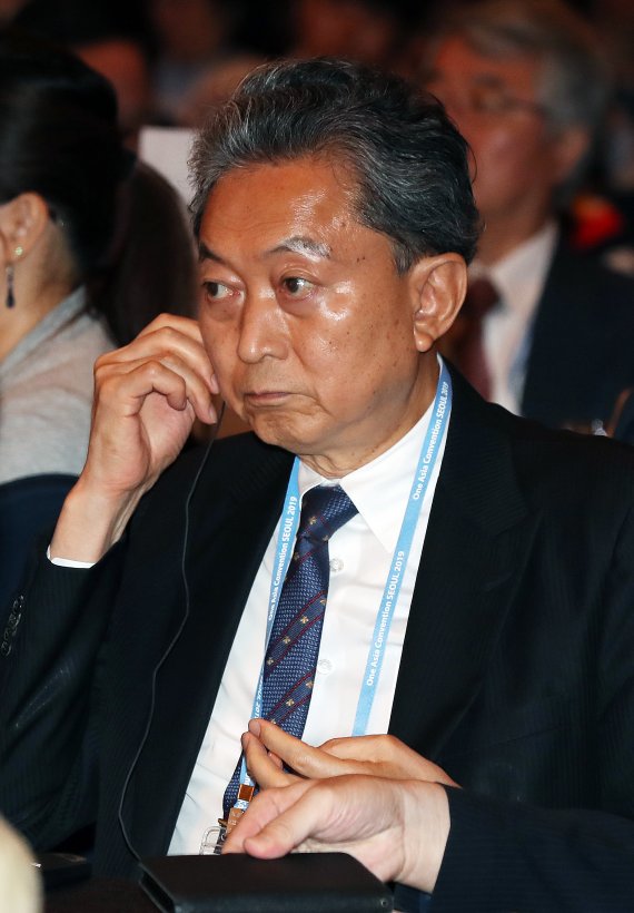 5일 하토야마 전 총리는 서울 을지로 롯데호텔에서 열린 '2019 원아시아 컨벤션' 행사에 참석한 후 기자와 만나 이같이 밝혔다.