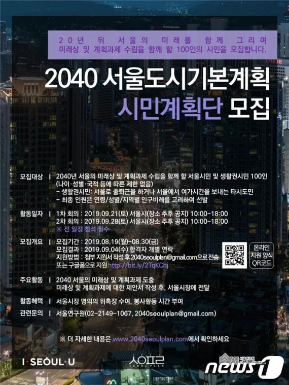 1단계로 서울생활시민 100명+α가 참여하는 2040 서울플랜 시민계획단을 구성하고 집중논의를 통해 올 11월 말까지 2040년 서울의 미래상과 계획과제를 도출한다. 이와 관련해 시는 이달 30일까지 시민계획단 100인을 모집한다.