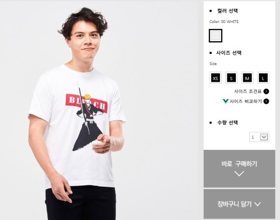 이 가운데 문제가 되는 상품은 애니메이션 '블리치' 캐릭터 티셔츠다. 제품 앞면에는 이 애니메이션의 주인공인 이치고가 '일본도'를 연상시키는 검을 든 모습이 새겨졌다.