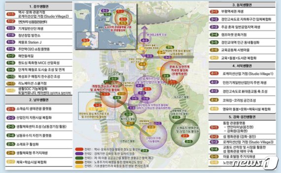 인천항과 개항장을 중심으로 한 ‘중부생활권’은 역사·문화관광과 로케이션산업 거점으로 발전시키고 소래포구와 남동국가산업단지가 있는 ‘남부생활권’은 생태관광 활성화와 생활체육형 주거지재생사업을 펼친다.