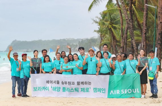 이날 에어서울 캐빈승무원 사회공헌 특화팀 '민트나래'는 29일 오전부터 보라카이 화이트비치에서 쓰레기를 수거하며, 일회용 패트병 등 플라스틱 쓰레기의 투기와 사용 자제를 호소하는 캠페인 활동을 실시했다. 또한, 화이트비치를 찾은 관광객들에게는 '물병 스트랩'을 제공하며, 일회용 플라스틱 줄이기 캠페인 동참을 독려했다.