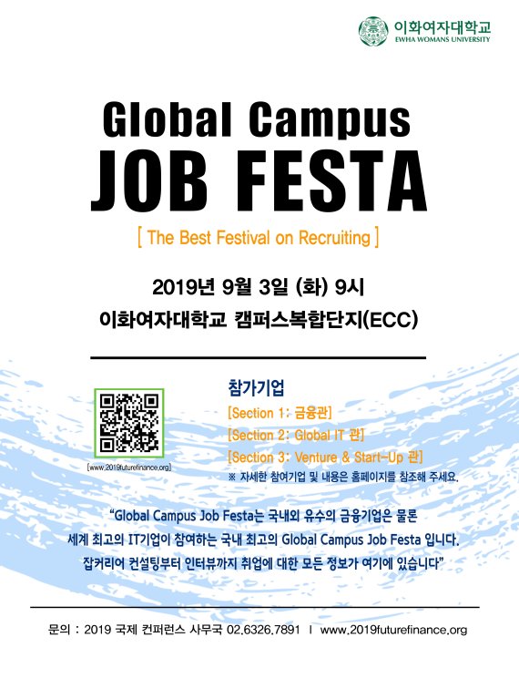 이화여대 관계자는 "이번 행사는 핀테크 혁신으로 금융 패러다임이 급변하는 상황에서 글로벌 빅테크 기업들이 선진 미래금융 사례를 직접 소개·공유함으로써 우리 금융의 혁신과 성장을 유도하는 계기가 될 것"이라며 "국내외 금융회사는 물론 글로벌 IT 및 미디어 컨텐츠 기업과 벤처 및 스타트업까지 참여한 잡페스타를 통해 미래의 주역인 청년들에게는 희망의 일자리를, 기업에게는 인재 발굴의 기회를 제공함으로써 청년 일자리 창출에도 기여할 것"으로 기대했다.