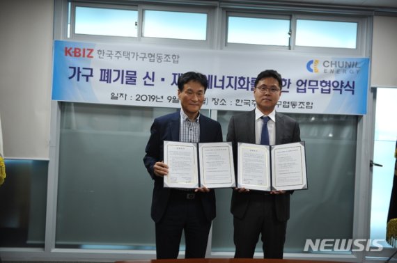 【서울=뉴시스】김진아 기자 = 한국주택가구협동조합은 2일 천일에너지와 '폐기물 처리(재활용)를 통한 신재생 에너지화' 추진화 업무협약을 맺었다고 밝혔다.