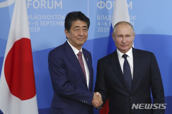 이날 로이터 통신에 따르면 블라디보스토크 동방경제포럼 참석 중 정상회담에 임한 아베 총리가 양국 평화조약 체결을 막고 있는 쿠릴열도 영토 분쟁을 해결할 것을 촉구했다.