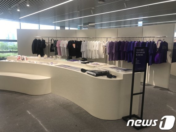 매장 반대편에 마련된 '숍'에는 알록달록한 색상의 티셔츠가 배치돼 있었다. 커버낫·디스이즈네버댓·키르시 등 무신사 테라스에서만 만날 수 있는 인기 브랜드에 새로운 색상을 입힌 제품들이다.
