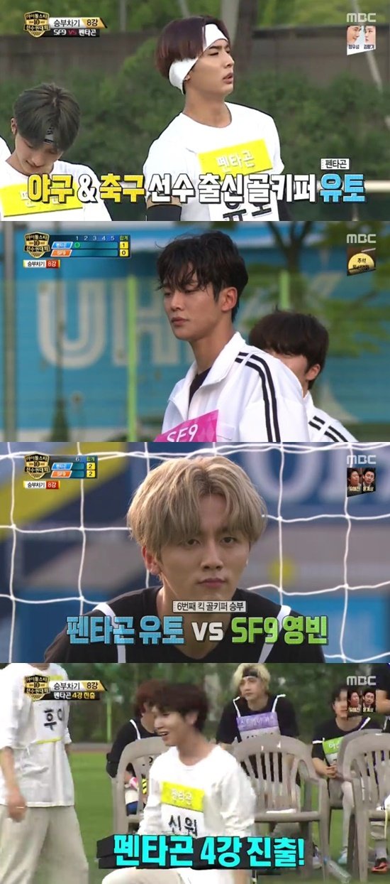 (서울=뉴스1) 박하나 기자 = 그룹 펜타곤이 승부차기 8강전에서 SF9을 꺾고 4강에 올랐다.