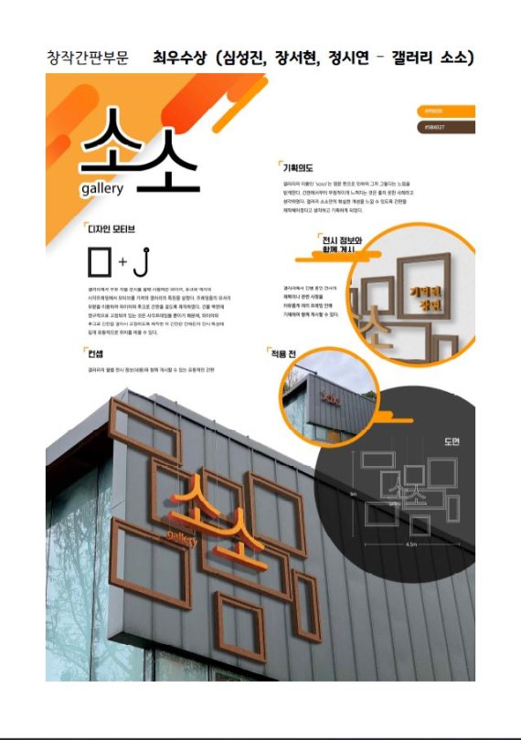 [파주=파이낸셜뉴스 강근주 기자] ‘갤러리 소소’가 제10회 파주시 예쁜간판·공공디자인 공모전에서 창작간판 부문 최우수상을 수상했다.