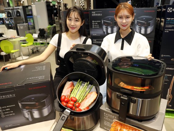 26일 이마트 트레이더스 월계점에서 모델들이 보이는 에어프라이어 '더 에어프라이어-V(6ℓ)' 제품을 소개하고 있다. 이마트 트레이더스는 일명 ‘보이는 에어프라이어’인 ‘더 에어프라이어-V(6ℓ)’를 출시하고 26일부터 트레이더스 전점에서 판매에 나선다.