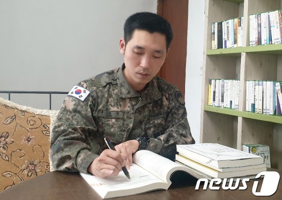 (양구=뉴스1) 하중천 기자 = 육군 21사단 소속 유인상(31) 병장이 최근 20대1의 경쟁률을 뚫고 지방직(전남) 9급 공무원 시험에 합격해 화제다.