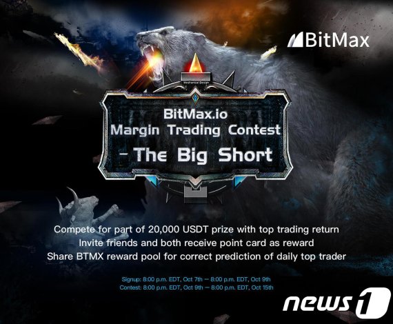 (서울=뉴스1) 송화연 기자 = 싱가포르 암호화폐 거래사이트 비트맥스가 오는 10일부터 16일까지 암호화폐 마진거래 대회를 개최한다고 1일 밝혔다.