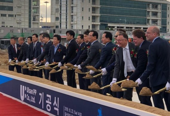 【파이낸셜뉴스 울산=최수상 기자】 폴리미래와 SK어드밴스드의 합작 법인인 울산피피(UPP· 대표이사 조세프 호인키스)가 22일 울산 신항만 배후단지에서 40t 규모의 폴리-프로필렌(PP) 생산시설 기공식을 갖고 본격적인 건설에 착수했다.