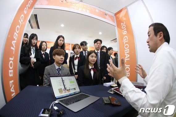 (대구=뉴스1) 공정식 기자 = 영진전문대는 23일 교내에서 해외취업에 도전하는 학생들을 위한 해외취업박람회를 열었다.