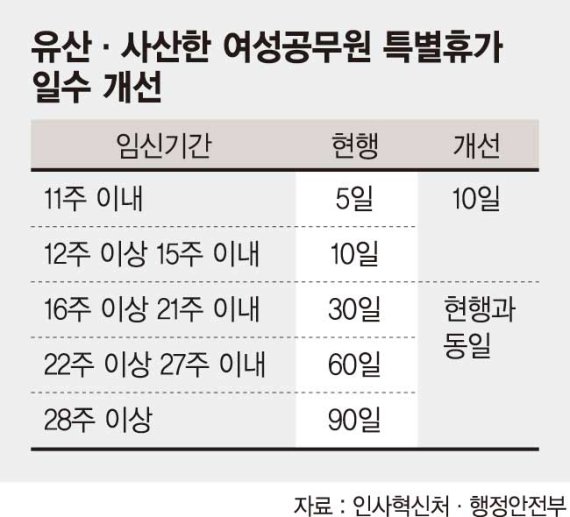 이번 개정안은 부부가 임신·출산·육아 과정을 함께 나눌 수 있는 제도적 기반을 강화하는데 방점을 뒀다. 먼저 유산·사산한 배우자를 둔 남성공무원은 3일간의 특별휴가를 받는다.