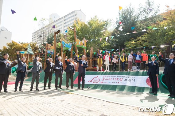 (구미=뉴스1) 정우용 기자 = 롯데그룹은 1일 구미시 구평동 참빛공원에 'MOM편한 놀이터' 11호점을 오픈했다.