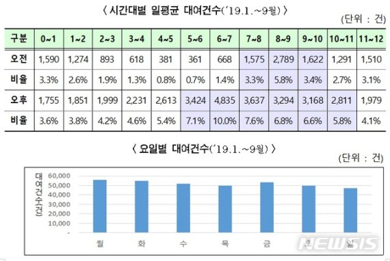 봄~가을철에 비해 기온이 영하권으로 떨어지는 겨울철에 이용건수가 일 2만 건 이하로 크게 감소했다. 특히 비 내리는 출·퇴근시간대에 이용량이 급격히 줄어든 것으로 파악됐다.