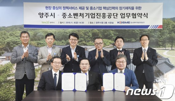 (양주=뉴스1) 이상휼 기자 = 경기 양주시는 지난 8일 시장실에서 중소벤처기업진흥공단과 '중진공 양주상담센터' 설립과 함께 '내일채움공제' 사업 추진을 위한 업무협약을 체결했다고 9일 밝혔다.