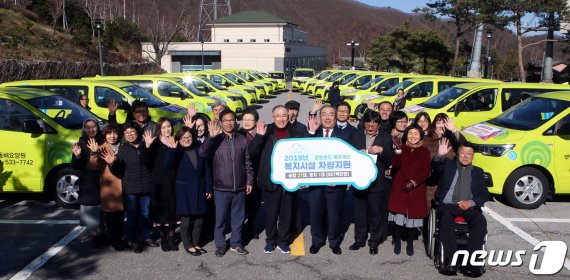 이날 재단은 공모를 통해 선정된 태백 햇빛나눔노인복지센터 등 22개 기관들에게 승합차 21대와 경차 1대, 총 22대의 차량을 전달했다.