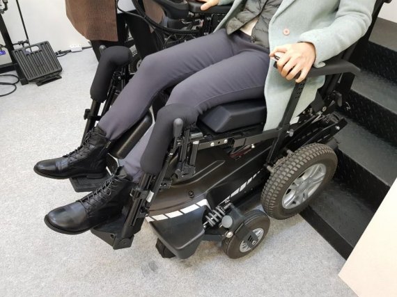 계단형 전동휠체어는 평지모드와 계단모드로 사용해 이런 상황을 극복할 수 있다. 계단모드로 작동할 시 앞·뒷바퀴가 들리고 휠체어 바닥에 장착된 체인이 계단에 걸쳐지면서 계단을 오를 수 있다.