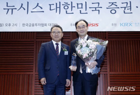 '2019 뉴시스 대한민국 증권·IR 대상' 시상식은 이날 오후 서울 여의도 금융투자협회 3층 대강당에서 개최됐으며 신인식 대신증권 전무가 수상자로 나섰다. 시상은 성인모 금융투자협회 전무가 맡았다.