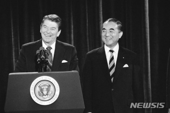외교안보 면에서 미일 관계를 '운명 공동체'로 자리매김한 공이 크다고 지지통신은 평가했다. 당시 로널드 레이건 미국 대통령(1911~2004)과 각각 '론(레이건 대통령)', '야스(나카소네 총리)'로 부르며 친밀한 관계를 구축했다. 방위비에 대한 국민총생산(GDP) 대비 1% 틀을 철폐하고 예산을 편성하며 미국과 협력 강화 노선을 명확히 했다.