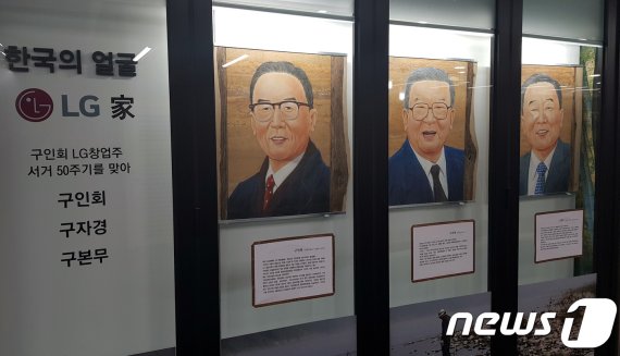 (서울=뉴스1) 박동해 기자 = 서울 지하철 1호선과 2호선이 만나는 시청역 지하보도에 LG 창업주인 고(故) 구인회 회장과 2대, 3대 회장을 지낸 구자경 명예회장, 고 구본무 회장의 얼굴이 나란히 오가는 시민들을 마주하고 있다.