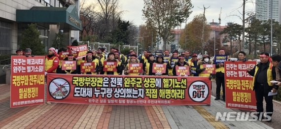 대책위는 이날 국방부 등에서 ‘전주항공대대 항공노선 결정 반대 상경집회’를 개최하며 “헬기 소음은 문재인 정부가 강조해온 ‘공정’과 ‘포용’, ‘정의’에 정면으로 위반하는 군민 생존권 침범”이라고 문제를 제기했다.