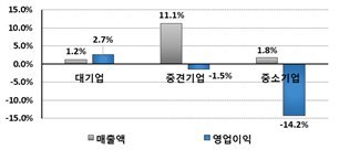 자산 증가세는 부채 증가세를 밑도는 8.9%를 기록했다. 대기업은 1년 전보다 자산을 5.3%, 중견기업은 10.3%, 중소기업은 21% 늘었다. 자산 총액은 2017년 9633조86500억원에서 2018년 1경494조8490억원으로 올랐다.
