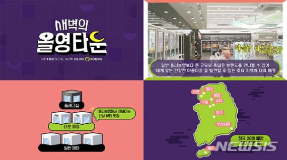 새벽의 올영타운은 올리브영이 타운 매장을 배경으로 처음 시도하는 브랜디드 콘텐츠다. 브랜디드 콘텐츠란 영상 등의 콘텐츠 안에 브랜드 메시지를 자연스럽게 녹여낸 것을 말한다. 지난 13~14일 유튜브를 통해 공개된 새벽의 올영타운 1, 2회에서는 가수 이지혜와 뷰티 크리에이터 레오제이가 출연해 사연자의 고민을 청취하고, 타운 매장 오픈 전에 다양한 상품을 활용해 솔루션을 제시했다.