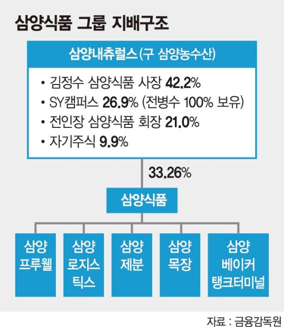 재판부는 "SY캠퍼스는 1인 주주인 전씨로 하여금 삼양식품 그룹의 경영권을 승계시키고자 설립·운영된 명목회사에 불과하다"며 "신주인수권 행사 등 일련의 거래 과정은 전 회장의 지휘 아래 전씨에게 삼양식품의 주식을 취득시키고자 하는 계획에 따른 것으로 보인다"고 지적했다.