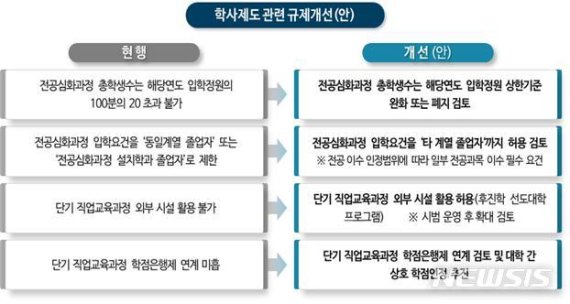 학사학위를 인정해주는 전공심화과정은 입학정원 20%을 넘을 수 없도록 제한했던 기준을 완화한다. 교육부는 내년 하반기 고등교육법 시행령 개정을 추진하기로 했다.