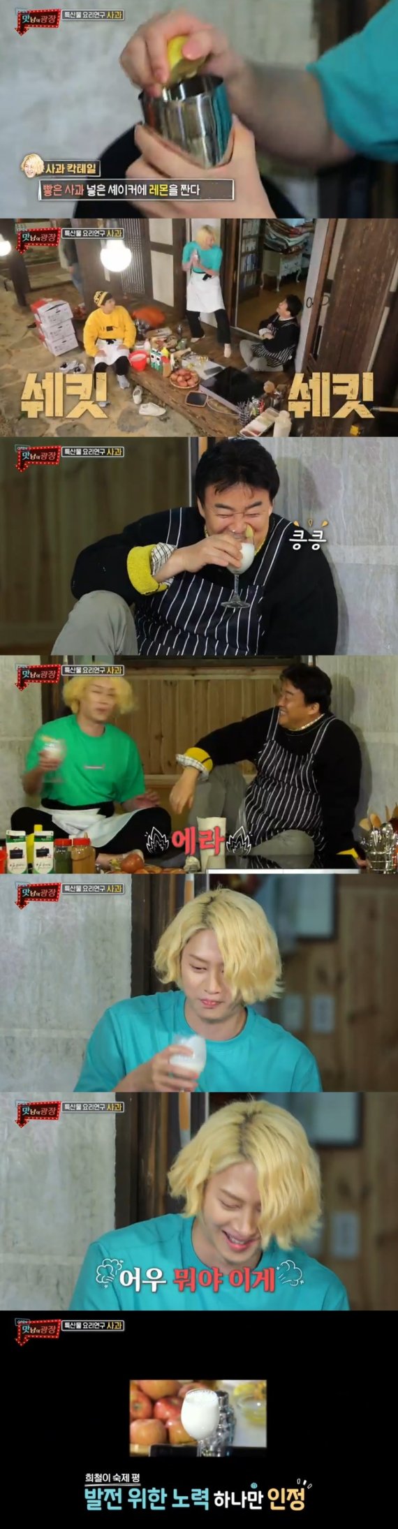 이어 김희철은 칵테일이 완성됐다면서 백종원에게 건넸다. "맛있을 거예유~"라는 말에 백종원은 한입 먹어봤지만 바로 "에라이"라고 해 궁금증을 높였다. 또한 "이게 뭐냐. 니가 먹어 봐라. 맛있다고 그러면 때린다"며 웃었다.