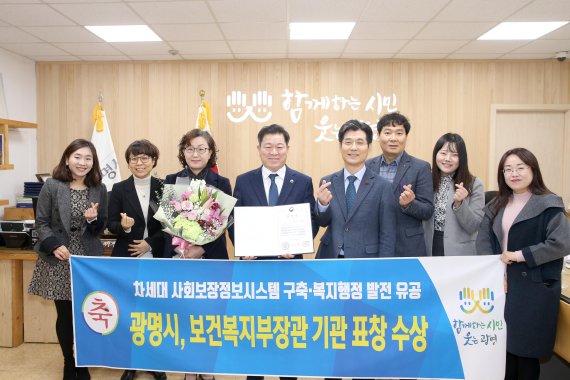 [광명=파이낸셜뉴스 강근주 기자] 광명시가 2019년 사회보장정보시스템(행복e음) 구축 기반 마련과 사회복지예산 효율적 집행, 복지행정 발전에 기여한 공로를 인정받아 보건복지부장관 기관표창을 수상했다.