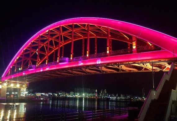 【속초=서정욱 기자】속초시가 총 10억원을 투자하여 추진한 설악대교 경관조명 설치공사가 완료된 29일. 성악대교에 808개 LED컬러조명과 7개의 서치조명이 경제적으로 힘들었던 한 해를 동해 바다속에 뭍으며, 저물어가는 2019년 12월의 마지막 주말 밤을 밝히고 있다. 사진=속초시 제공