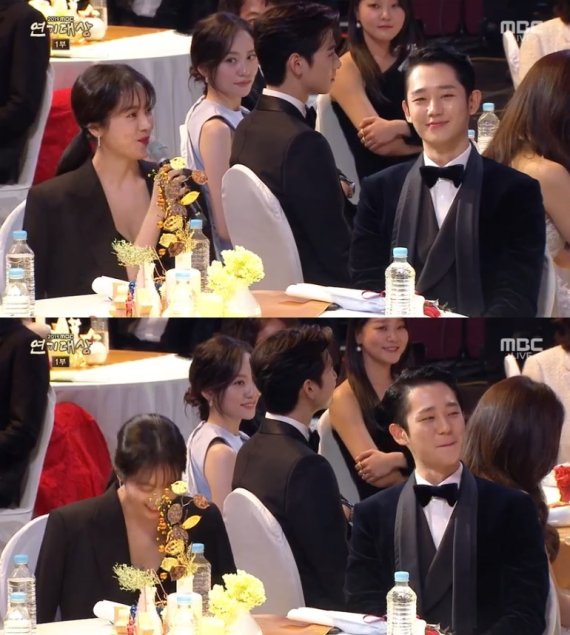 옆에 있던 정해인은 수줍은 미소를 지었다.