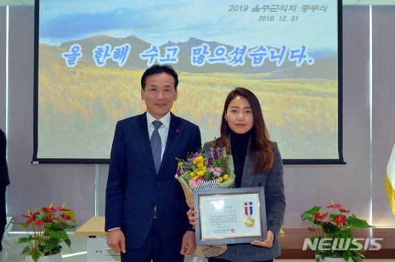[울산=뉴시스]유재형 기자 = 울산시 울주군의회는 경민정 의원이 전국시군자치구의회 의장협의회가 수여하는 ‘2019년 지방의정봉사상’을 수상했다고 31일 밝혔다.