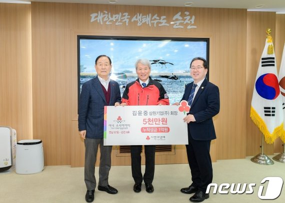 (순천=뉴스1) 지정운 기자 = 김윤중 삼원기업㈜ 회장이 31일 저소득층 지원을 위한 성금 5000만원을 순천시에 기탁했다.