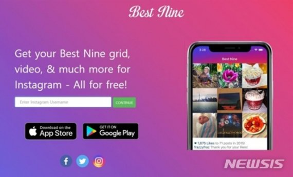 인스타그램 계정에 올린 게시물 중 '좋아요'를 가장 많이 받은 사진 9장을 보여주는 웹사이트다. '인스타그램 연말 정산'으로도 불리고 있다.