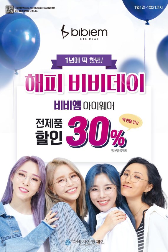 [파이낸셜뉴스]다비치안경체인은 1월 한 달간 자사 인기 안경테 비비엠(bibiem)을 30% 할인하는 ‘해피 비비데이’를 진행 한다고 3일 밝혔다.