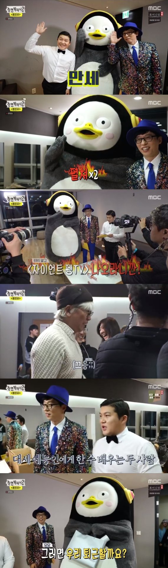 지난 4일 오후 6시30분 방송된 MBC '놀면 뭐하니?'에서는 '2019 MBC 방송연예대상'을 앞두고 유산슬을 기다리는 펭수의 모습이 그려졌다.