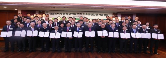 (서울=뉴스1) 김도엽 기자 = 저축은행 CEO(최고경영자)들이 올해 '금융소비자 중심 경영'을 위한 자율결의를 다짐헀다.