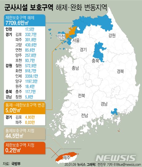 또 국방부는 군사시설 보호구역 해제와 별도로 5만㎡의 통제보호구역을 제한보호구역으로 완화했다.