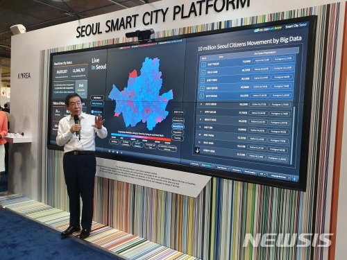 박 시장은 이날 오후 2시30분 CES의 메인전시장인 라스베이거스 컨벤션센터 테크 웨스트(Tech West) CES 서울관에 마련된 '디지털 시민시장실'을 시연했다. 서울이 스마트기술을 활용해 도시의 주요 의사결정 효율성을 어떻게 높이고 있는지 직접 보여준 것이다.
